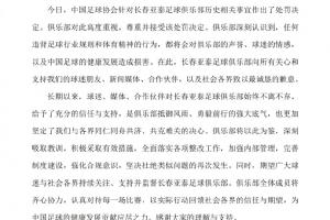 体育资讯01月29日讯 亚泰官方回应历史问题处罚
