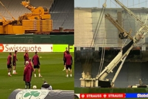 尽管如此,罗马队依然在该球场进行了紧张的踩场训练。球队在一个小时内完成了跑步、体能激活和战术演练。