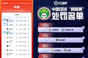 体育资讯1月30日讯 足协官宣“假赌黑”专项整治行动受处罚的俱乐部名单。津门虎、申花被罚10分,中超共9队被罚分,总计13家职业俱乐部被罚分。