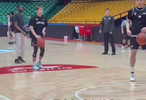 1月31日晚,CBA联赛第22轮,山东高速男篮继续坐镇主场迎战广州龙狮,这也是球队春节前最后一个主场的联赛。赛前,龙狮球员郭艾伦亮相省体踩场,与队友积极互动。(齐鲁晚报·齐鲁壹点 冯子涵)
