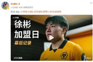 体育资讯01月31日讯 昨日狼队正式官宣徐彬加盟,今日徐彬在个人微博发布加盟狼队幕后花絮视频,配文写道:“第一天”。