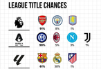 五大联赛夺冠概率出炉:英超德甲意甲法甲领头羊均超9成胜算 巴萨皇马64开成唯一悬念