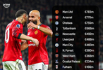 英超5年净支出榜曼联7.83亿居首,布莱顿唯一盈利