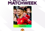 传射建功,卡塞米罗当选英超第24轮最佳球员
