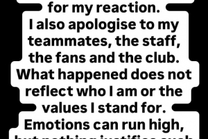 “发生的事情并不能反映我的为人,也不能反映我所代表的价值观。情绪激动在所难免,但没有什么理由可以为这种行为辩护,我保证这种事不会再发生了。”