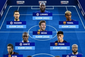 切尔西巴萨历史最贵11人阵:梅西、亚马尔领衔,阿扎尔、坎特在列