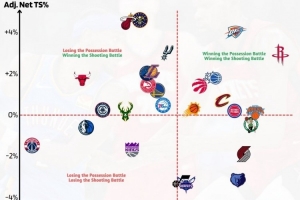 横轴往右代表能比对手获得更多出手 纵轴向上是比对手终结效率更高