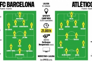 体育资讯12月2日讯 北京时间12月3日4点,西甲第19轮迎来焦点战,巴萨主场对阵马竞,《每日体育报》赛前预测双方首发。
