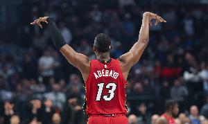 热火中锋阿德巴约出战9分18秒,3投全中(三分1中1),拿到7分4篮板1盖帽,正负值+2。