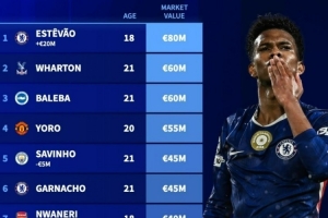 体育资讯12月9日讯 德转更新了英超球员身价,并盘点了目前U21球员身价榜,具体如下: