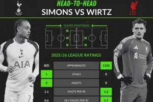 维尔茨(利物浦):11次首发、4次替补,0球、0助攻,场均1.2射门、1.7关键传球、0.9过人、传球成功率83.3%,获评6.54分