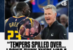 勇士魔术第三节初段,格林冲着科尔怒吼,随后他返回更衣室穿着热身服回来