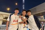 我们可以看到王钰栋穿了一件英超劲旅热刺的球衣,站在三人的最右边,而中间站的是鲍盛鑫,最左边的是蒯纪闻,他们身后是高耸入云的迪拜塔。迪拜的天气一看就是很暖和,大晚上的都还只是穿个短袖就够了,这也是U22国足选择在迪拜集训的原因之一,当然也是为了提前适应西亚的气候,毕竟U23亚洲杯就是在西亚的沙特举行。