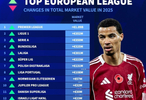 2025年欧洲联赛身价涨跌榜:英超上涨10.9亿欧居首,法甲第二