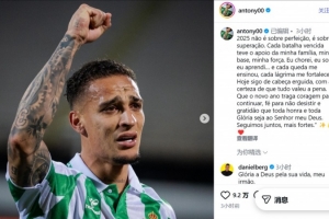 体育资讯1月1日讯 2026年到来,皇家贝蒂斯前锋安东尼更新社交媒体,总结了2025年。
