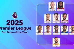 体育资讯01月03日讯 经过球迷票选后,英超官方确定2025年度最佳十一人阵容。