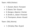 阿门、伊森、杜兰特、小贾、申京。