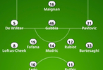 奇克🏴、福法纳🇫🇷、莫德里奇🇭🇷、拉比奥特🇫🇷、巴特萨吉🇮🇹组成五中场;