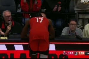 在裁判判定超时后,伊森非常沮丧,趴在技术台很久没缓过来,他的失望和开拓者主场的欢呼形成了鲜明的对比。