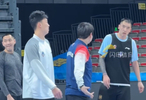 而在中午踩场训练的时候是一大焦点,邱彪虽然被禁赛了,不过他没有缺席训练,在大家训练的时候,邱彪一直都在指导。就比如大家在投篮的时候,邱彪在说一些动作上的细节。