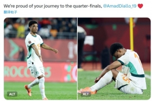 曼联官方社媒晒出阿玛德在国家队的照片,并写道:“向阿玛德致以慰问,他所在的球队在周六的非洲杯比赛中出局。”