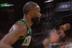 GIF-杰伦·布朗迎着文班亚马调高弧顶命中三分