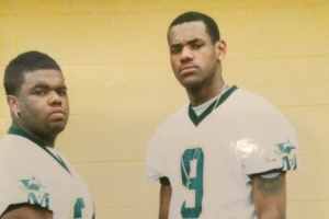 “我见过的最具天赋的橄榄球运动员之一,尽管他从未上过大学,那就是勒布朗·詹姆斯。这张照片摄于2002年春天,在俄亥俄州阿克伦市圣文森特-圣玛丽高中。与他合影的是希安·科顿。他曾同意参加我们的美国陆军比赛,但那年九月不幸受伤。”该专家写道。