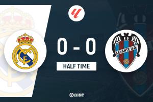 半场-皇马0-0莱万特 姆巴佩凌空抽射造险皇马仅1射正