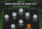 本轮英超曼市德比即将打响,数据网站Whoscored也盘点了两支球队本赛季英超场均评分最高阵容,其中曼城10人入选,具体如下: