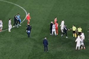 帕夫利季斯罚点时滑倒,踢飞点球,赛后难过不已,穆帅拥抱送上安慰。