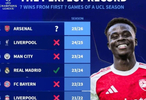 欧冠联赛阶段第七轮,阿森纳3-1战胜国际米兰,实现本赛季欧冠开局七连胜。