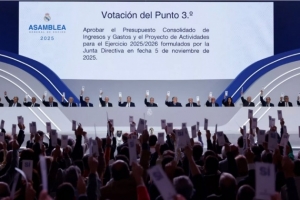 在2025年举行的皇家马德里普通会员大会上,代表会员们一致通过了所有讨论的议题。此次会议以现场和远程方式在皇家马德里篮球馆举行。会员们几乎全票支持弗洛伦蒂诺·佩雷斯主席及其董事会的管理,并批准了2024/25年度财务报告、2025/26年度预算以及2026/27年度会费。