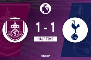 第45分钟,沃克传到禁区后点,图安泽贝跟进打门得手!热刺1-1伯恩利↓