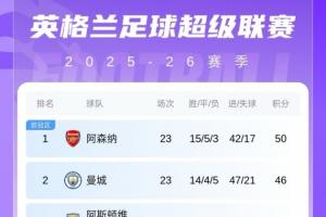 下一篇: 联赛优势缩水至4分!阿森纳近3轮2平1负,7轮不败被曼联终结