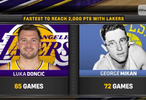 东契奇成为湖人队史最快达到2000分的球员,只用了65场,乔治麦肯用了72场。