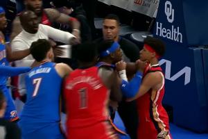 鹈鹕雷霆比赛后爆发剧烈冲突 多特费尔斯掐架 费尔斯多次冲锋被拦