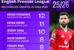 据著名统计机构Squawka的数据显示,曼联中场布鲁诺-费尔南德斯是本赛季英超运动战中创造重大机会最多的球员,曼城双星切尔基和多库紧随其后。