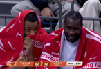 终场前3分58秒,北京以72-82落后,当转播方镜头给到场边北京两名外援时,斯佩尔曼和马帝昂的脸上都洋溢着笑容,前者还边说话边捂嘴笑。